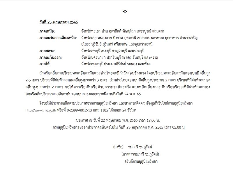 Therefore, people are asked to follow the announcement from the Meteorological Department. and can follow the information at the Meteorological Department website http://www.tmd.go.th or at 0-2399-4012-13 and 1182 24 hours a day. The Meteorological Department will issue the next announcement on May 23, 2022 at 5 a.m.