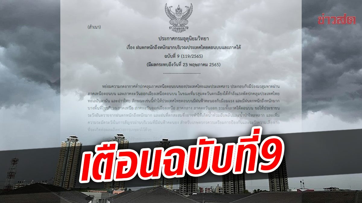 The Meteorological Department has issued the No. 9 warning of heavy to very heavy rains. Bangkok will not survive. Ask people to be careful.