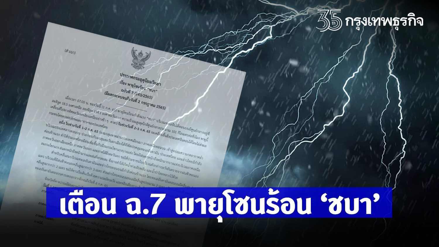 July 1, 2022 meteorological department Notice “Tropical Storm Chaba” Issue 7 (Effective until 2 July 2022) Beware of the danger of thunderstorms and gusts of wind which can cause flash floods and flash floods.