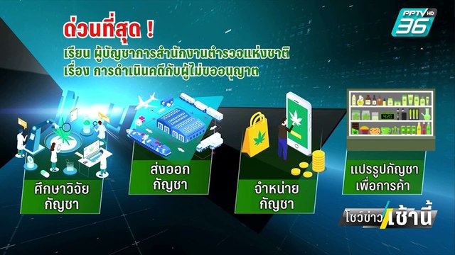 In the case of a letter sent from the Ministry of Public Health to the Commissioner of the Royal Thai Police asking them to arrest and prosecute the group Selling and processing cannabis This has been debated all day. until yesterday evening Ministry of Health has returned. Request to recall the said book, saying that it will review it before going to listen to the clarification from Director-General of the Department of Thai Traditional Medicine #Ministry of Public Health #Free Marijuana #Return of Marijuana Documents #Channel 36 #Big news story #News today #PPTVNews #PPTVHD36 #news show this morning #PPTVStories Follow more news on the website. https://www.pptvhd36.com and social media channels Facebook : https://www.facebook.com/PPTVHD36 Twitter : https://twitter.com/PPTVHD36 Instagram : https://www.instagram.com/ pptvhd36/ Line : https://lin.ee/fRsq0ip