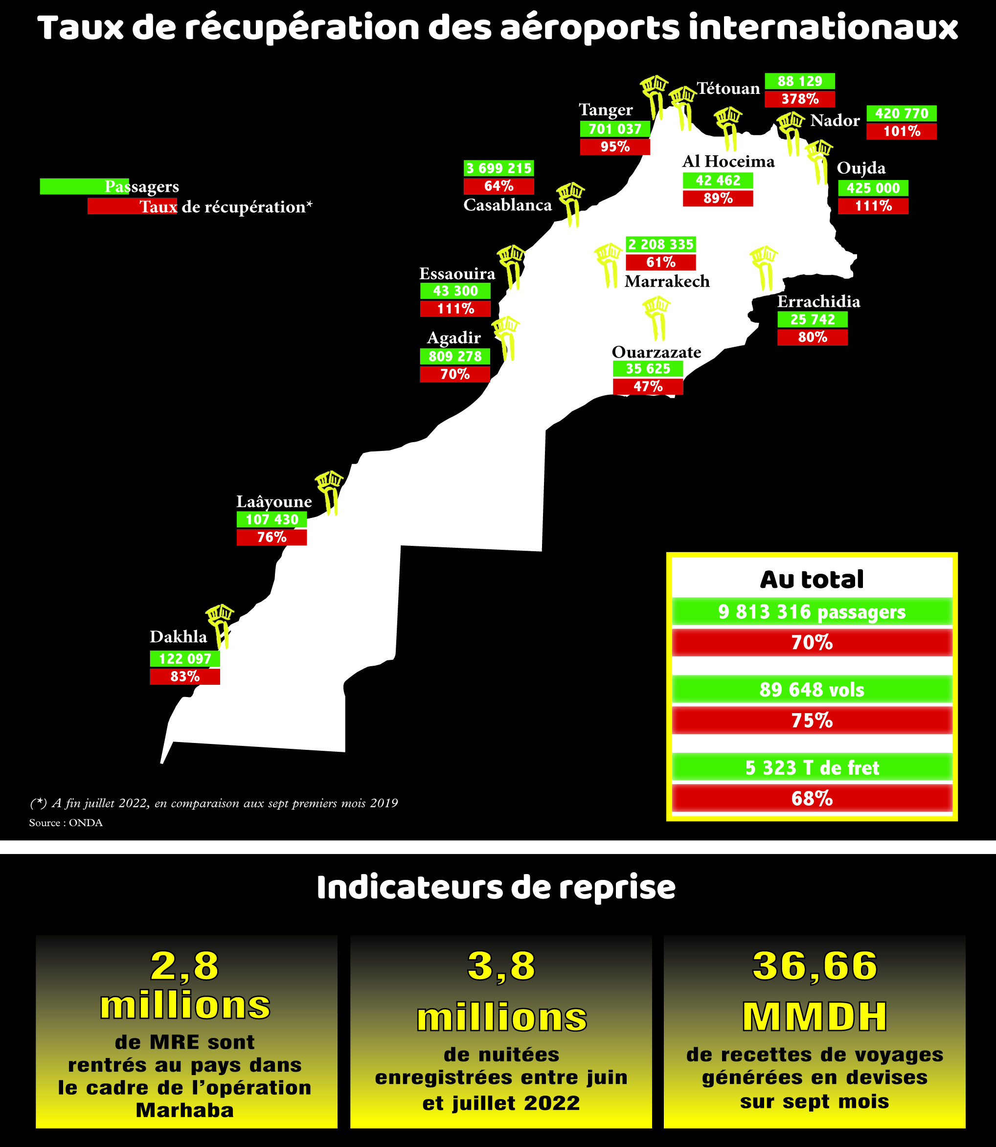 Performances which restore balm to the heart of market operators who have suffered from the agony of the tourism sector over the past two years. Remember that the rescue plan established by the government has made it possible to mobilize an envelope of 2 billion DH in order to preserve jobs, the time of the recovery.