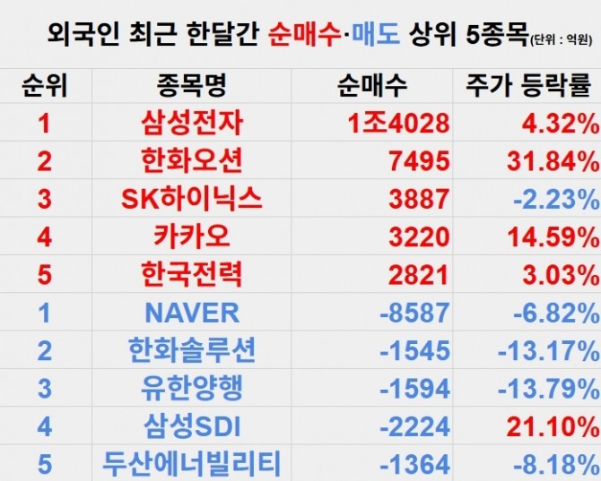 Beyond semiconductors, the shipbuilding industry also experienced significant foreign investment.Hanwha Ocean saw the purchase of 774 million shares (7.495 trillion won), with Samsung heavy Industries following closely with 1.39 million shares (165.4 billion won). The recovery of international shipping volumes and anticipated offshore plant projects are cited as key drivers for this increased interest.