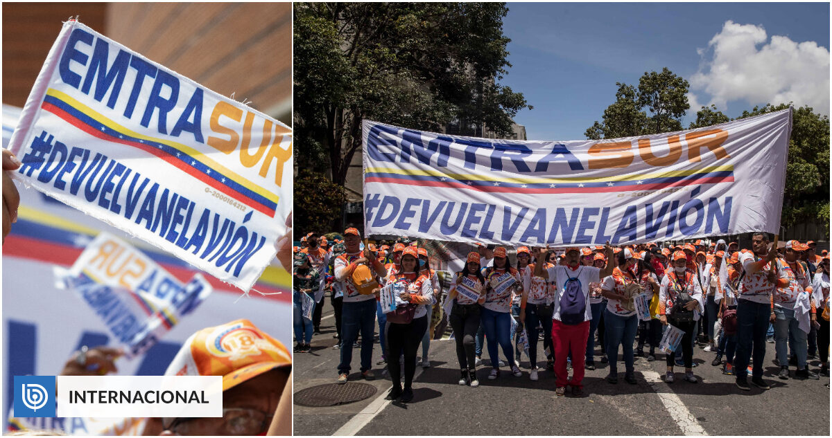 “Return the plane and the crew!” Some 35 Conviasa workers, uniformed with company T-shirts and caps, shouted outside the diplomatic delegation.