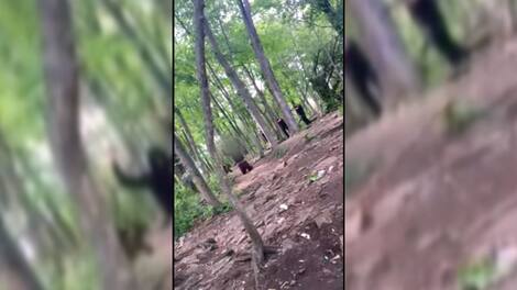 In the video, we can see the police, weapons drawn, surround a young person and ask him to kneel.