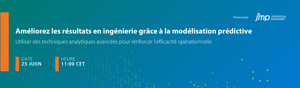 The webinar organized on June 25 by JMP and Techniques de l’Ingénieur aims to explain how predictive modeling can revolutionize the understanding of complex processes. By viewing the replay, discover essential techniques that will improve your performance and optimize your decisions.