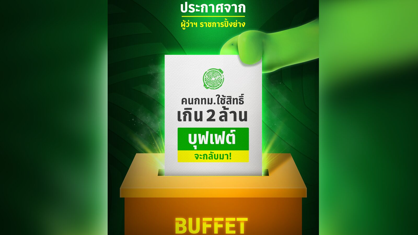 What do the townspeople say! Bar BQ Plaza is preparing to bring back a great buffet promotion. If the election of the Bangkok governor exceeds 2 million rights