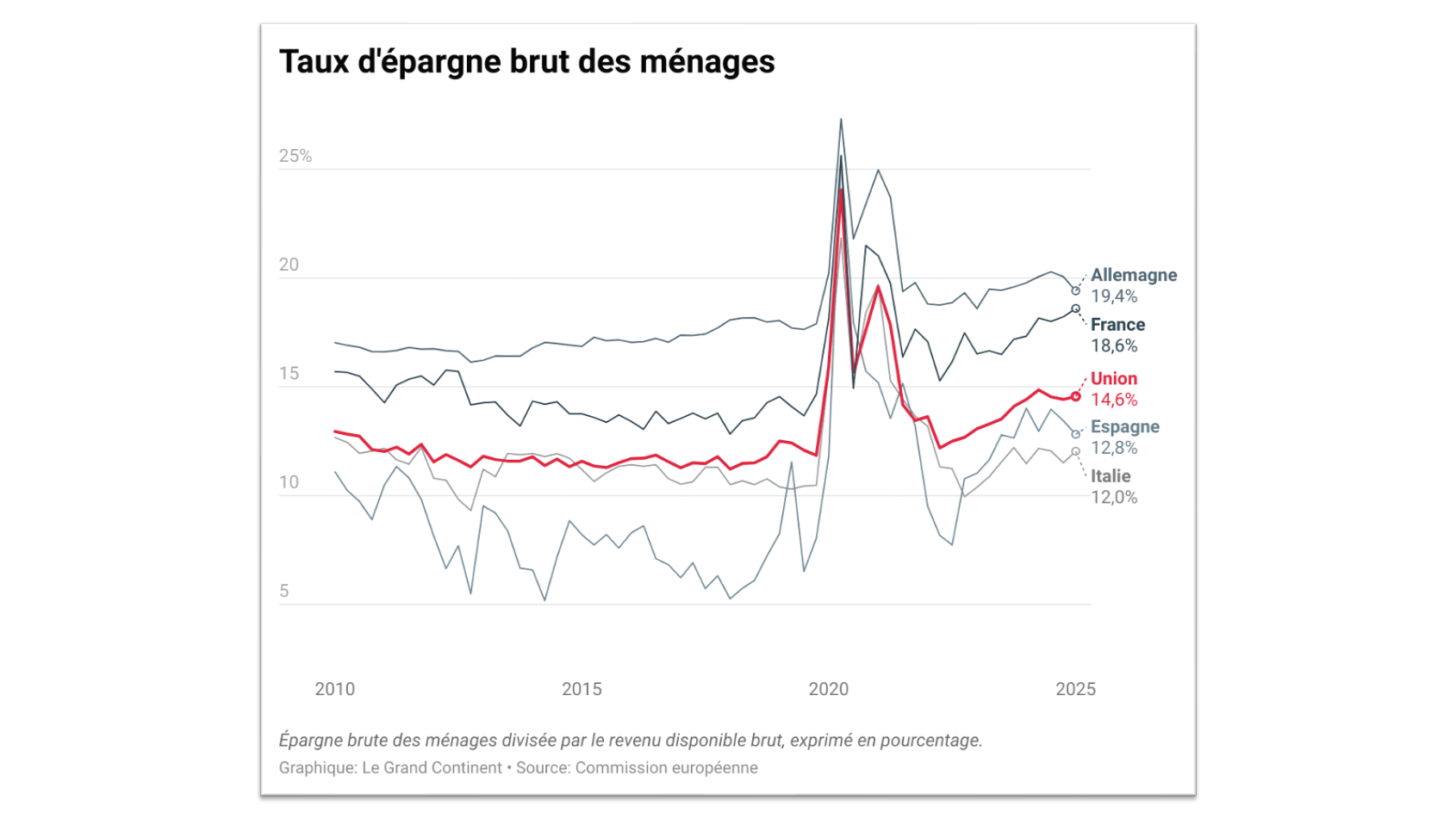 <p>European households are now the most prolific savers in the OECD. A remarkable 11% of French household income remains unspent on consumption, dwarfing the rates in the United States (5%), South Korea (5%), Canada (3.5%), and Japan (1%). While some Gulf and Asian nations also exhibit high savings rates, Europe’s surge is particularly noteworthy given its economic context. This divergence is a critical element for <a href="https://developers.google.com/search/docs/fundamentals/seo">SEO</a> and understanding global economic trends.</p>