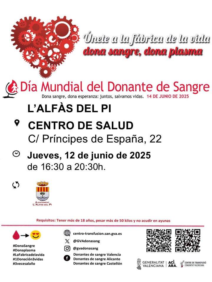 World Blood Donor Day by donating blood at the L'Alfàs Health Center. Learn about blood donation requirements, the process, benefits, and how yoru donation impacts lives in the Alicante province.">