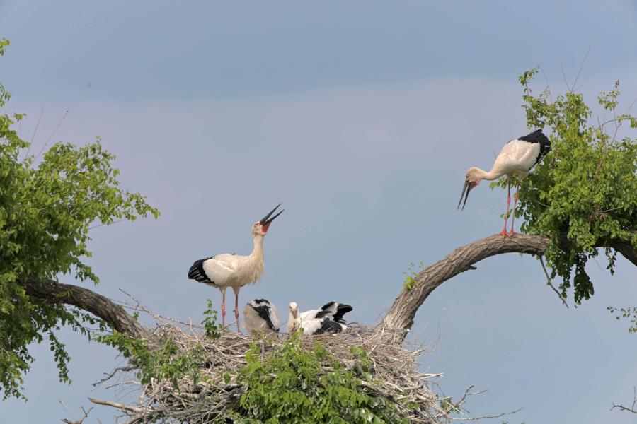 In the Zhalong national Nature Reserve,located in Qiqihar,Heilongjiang Province,an oriental white stork family provides a heartwarming scene. As summer progresses towards the end of breeding season, young chicks begin to learn how to fly, guided by their parents. This protected habitat offers these endangered birds a sanctuary to thrive,highlighting the importance of conservation efforts.